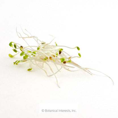 Nutritious, delicious, and easy to grow! High in protein, essential amino acids, digestive enzymes, vitamins, minerals, and (when exposed to light) chlorophyll. Alfalfa sprouts add lively flavor and texture to salads and sandwiches. The culinary possibilities are limited only by your imagination!
