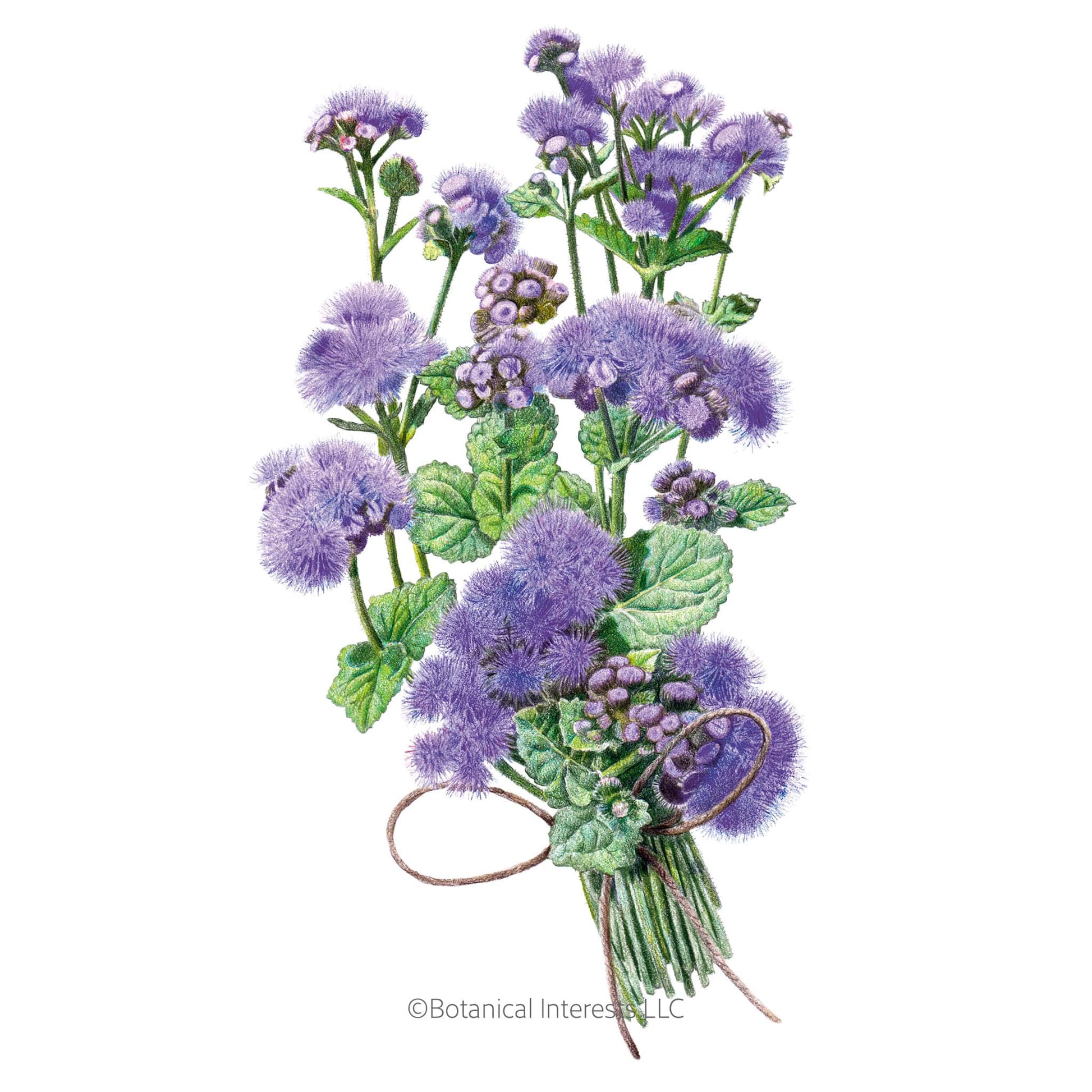 Variety Info: ½" bluish-purple pom-pom-like flowers with feathery petals borne in clusters.