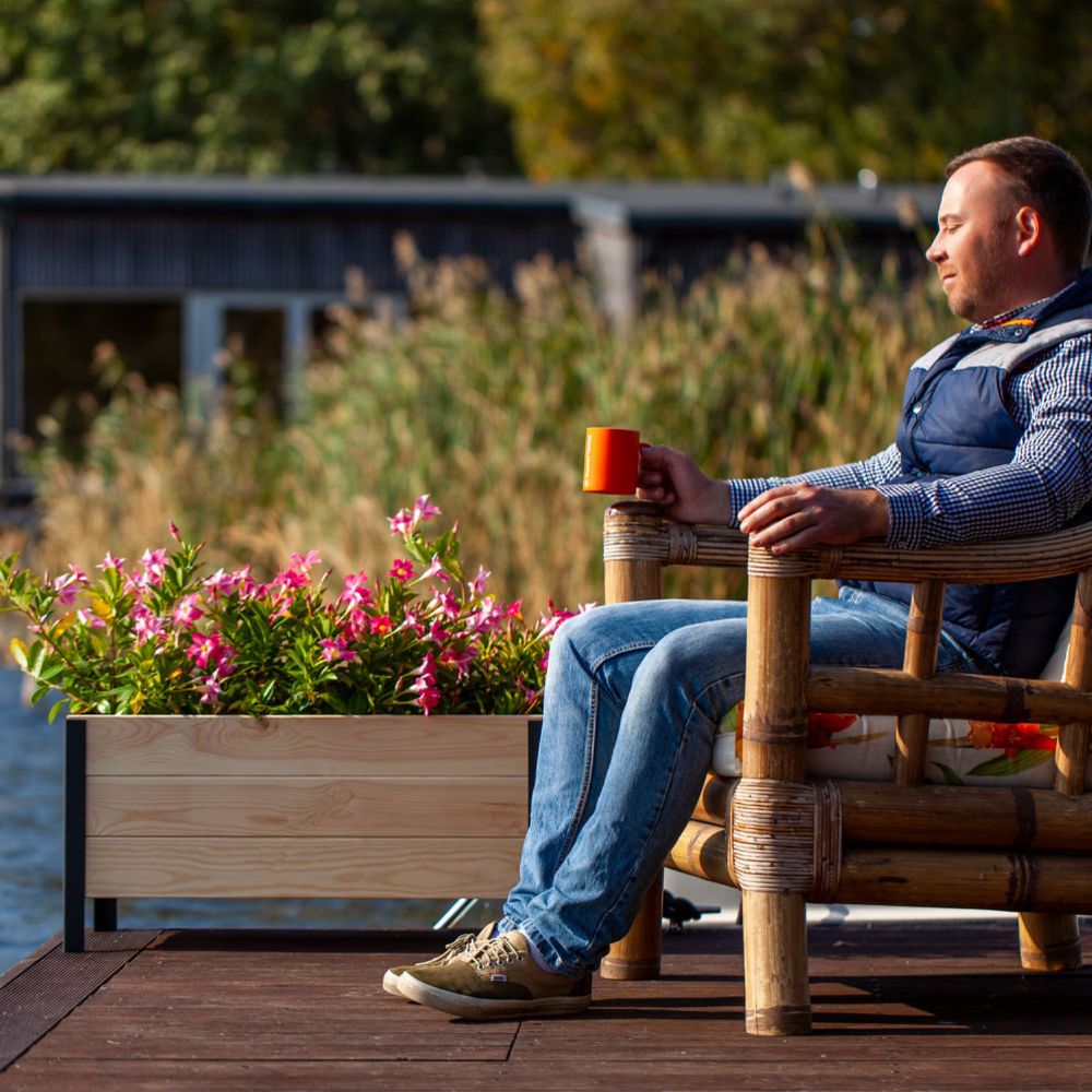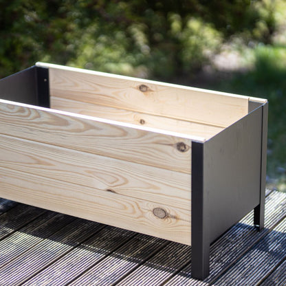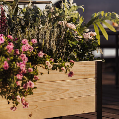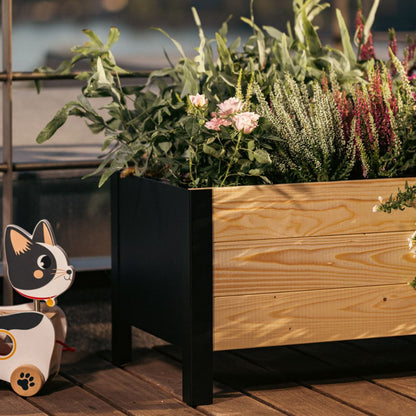 Built from sustainable Nordic softwood with sleek, black metal sides, this raised planter really blends style and function, making it an easy, beautiful addition anywhere you want to place it—whether it’s headed for your balcony, porch, patio, dock, or yard.