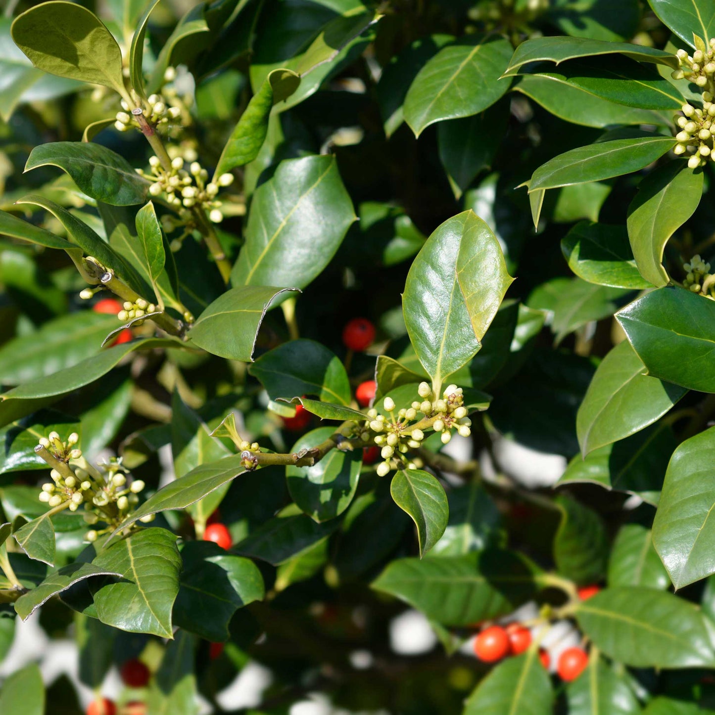 Evergreen: Spiky leaves are the hallmark of a good holly tree, and this evergreen is no different. It keeps its shape as it grows.