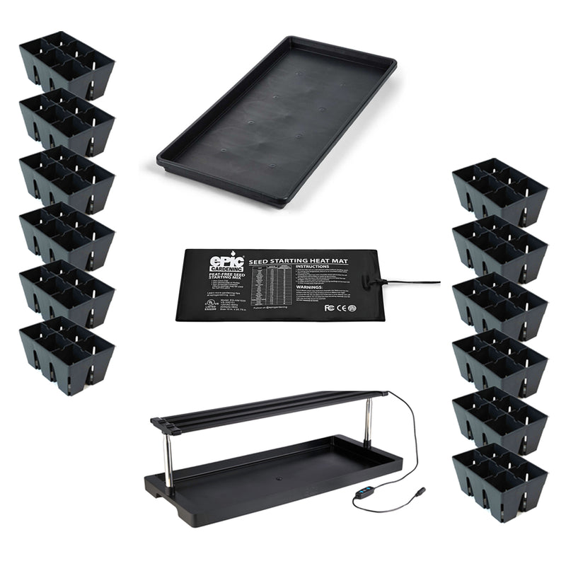 This seed starting bundle is a complete kit designed to help beginners or experienced gardeners start their seeds before transplanting them to their garden or outdoor space.