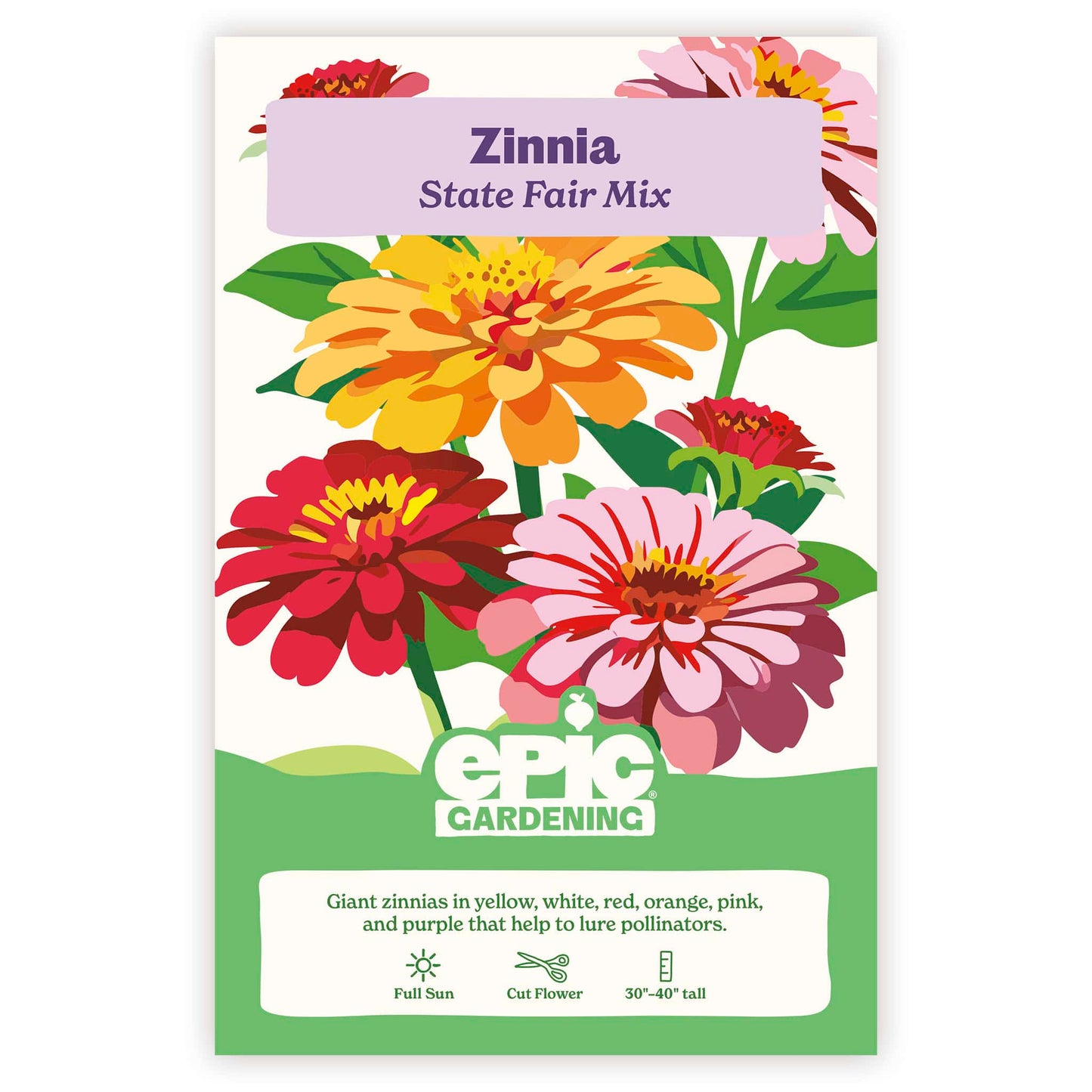 State Fair Zinnia Mix is a great seed for beginners. Plant it in a particular spot or broadcast sow it with other flowers. In zone 4, we often start some indoors for earlier blooms as well as direct sowing. These flat-topped beauties are butterfly magnets and are a great cut flower!